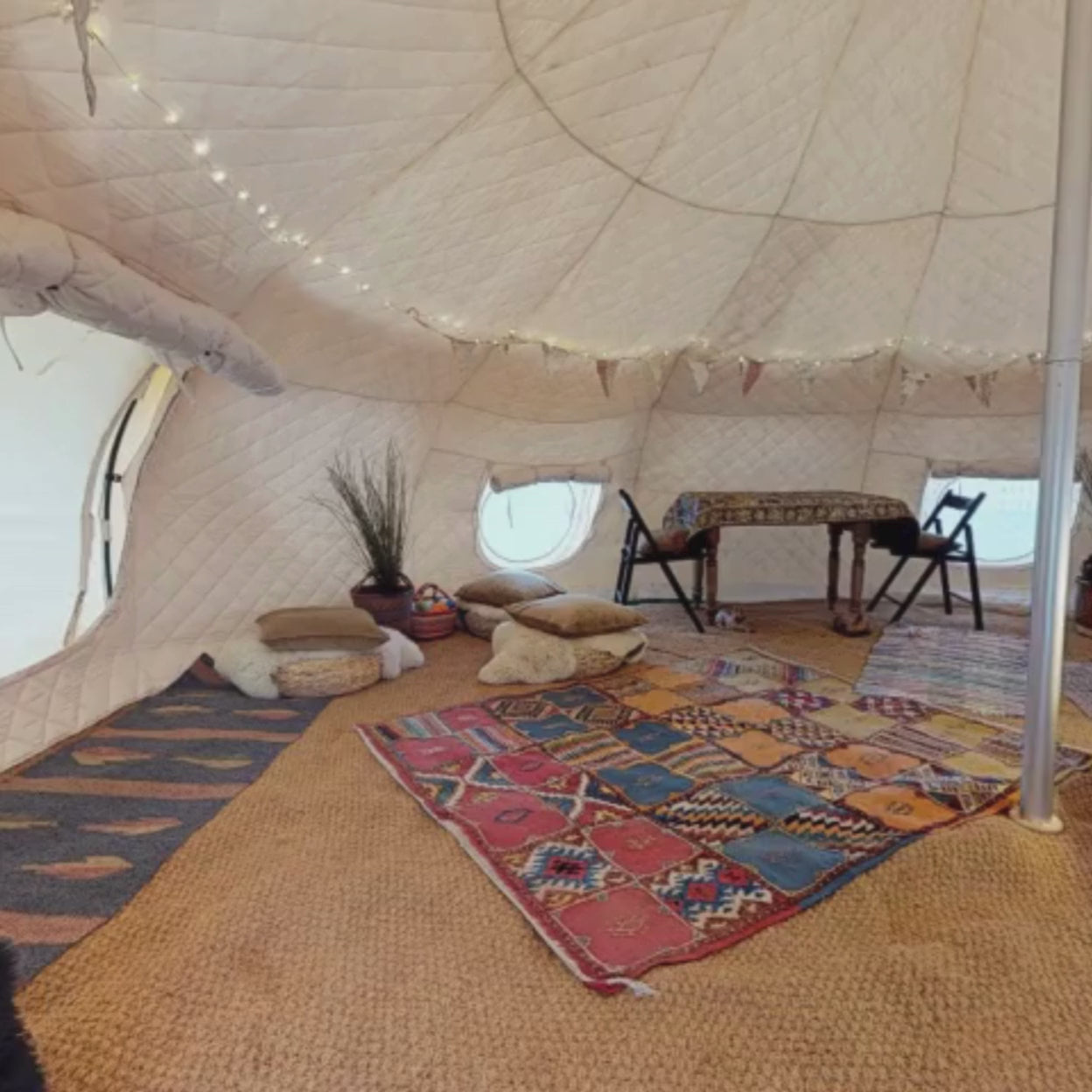 Hybrid Deluxe models have the additional rear door for access and to maximize airflow through your tent. The 20ft Hybrid Deluxe is able to accommodate 3 double/queen sized beds, often used for yoga workshops and retreats.